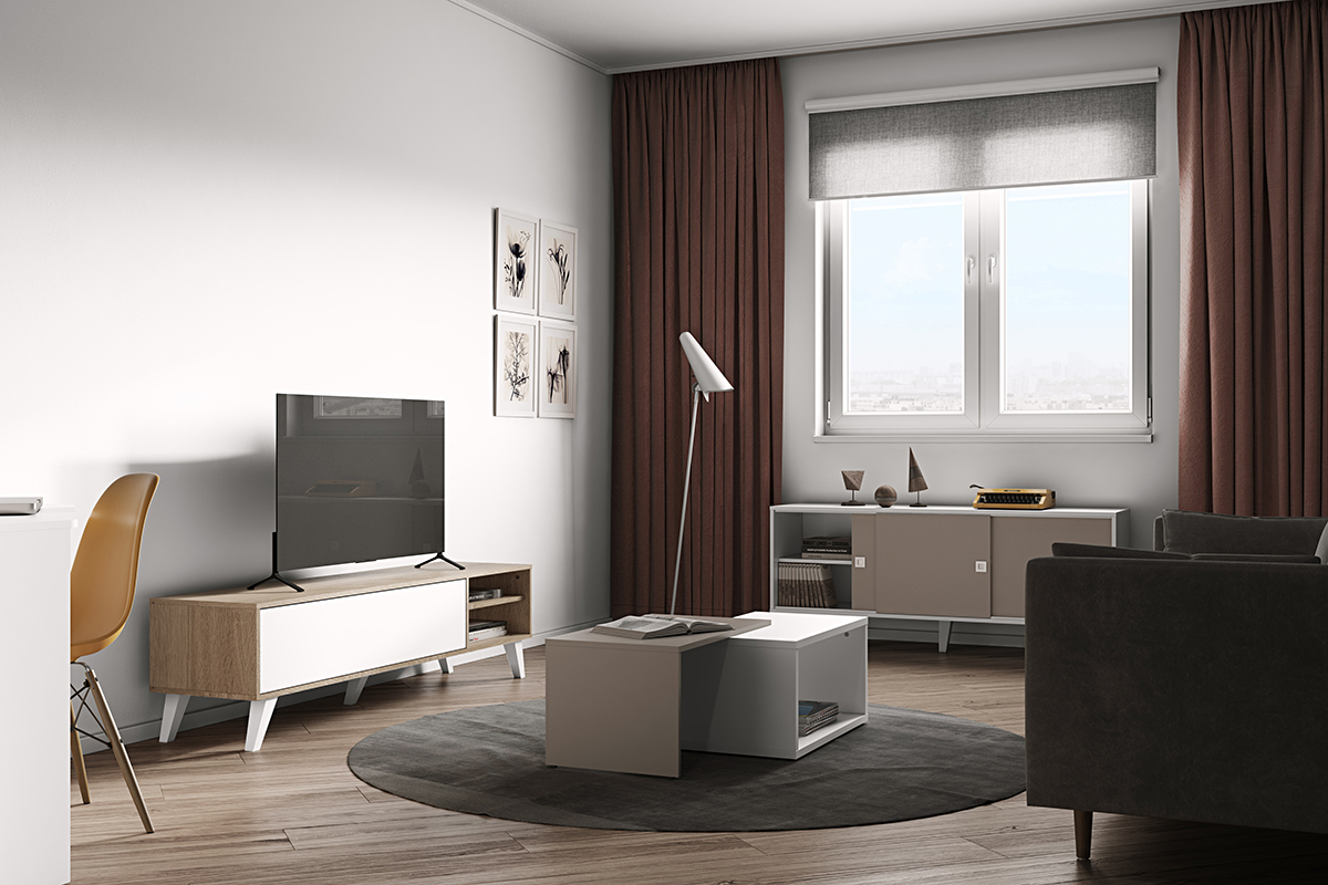 Tv Mobel Skandinavisch Holz Und Weiss Origami Miliboo