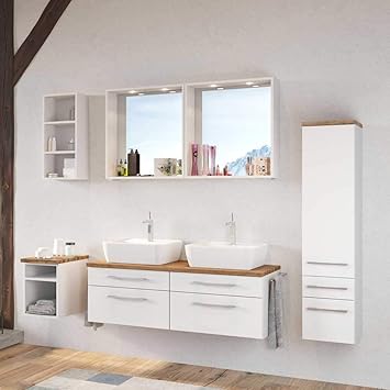 Pharao24 Badmobel Kombination Mit Doppelwaschtisch Weiss Und